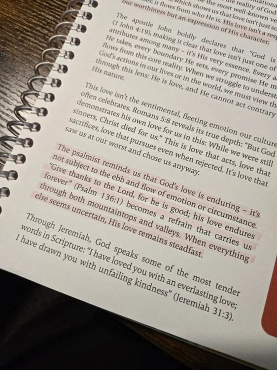 Discover spacious 10-point print and generous margins perfect for heartfelt journaling. Enjoy spiral binding that lies flat for hands-free reflection. Each week unfolds new lessons and blessings to nourish your soul.
